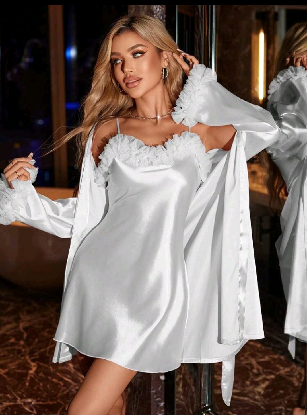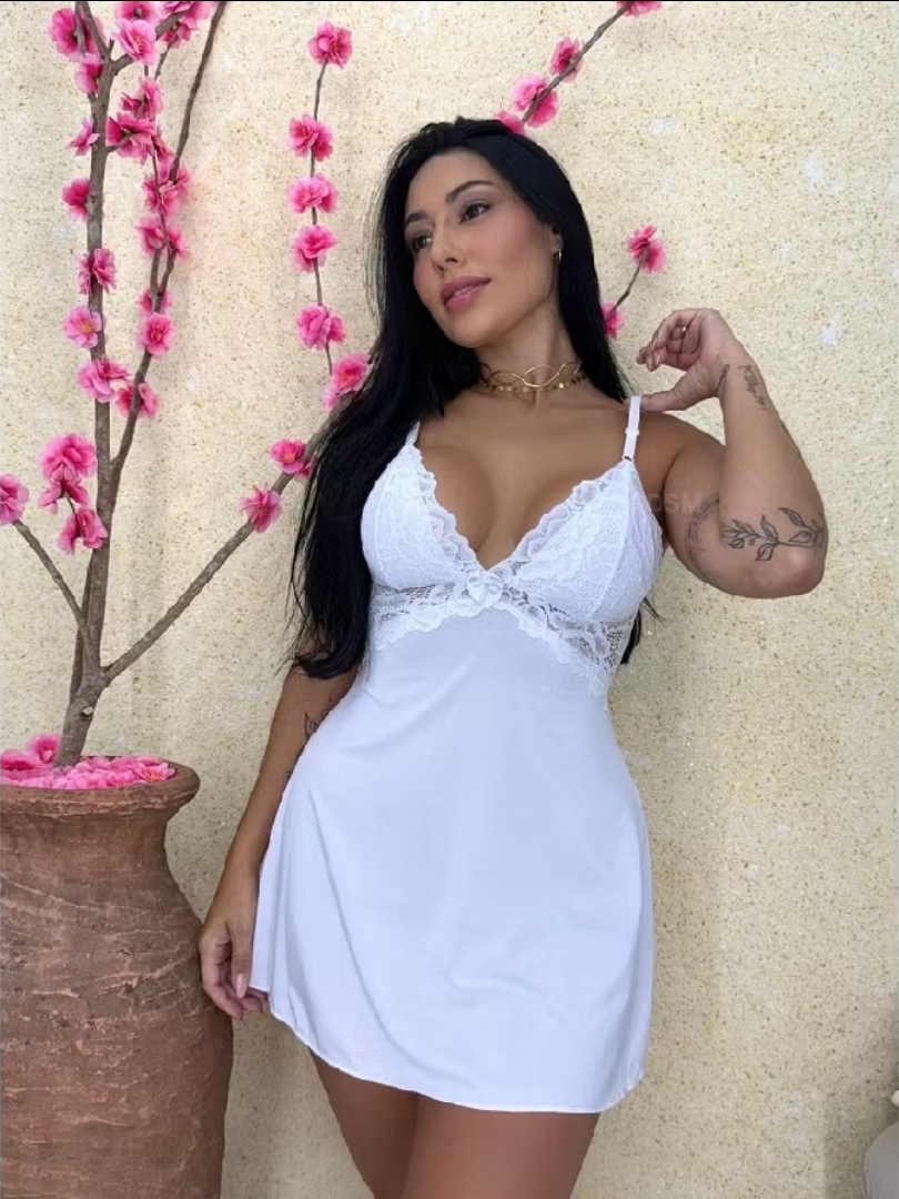CAMISOLA SENSUAL EM TULLE COM TANGA E LIGA PARA PERNA
