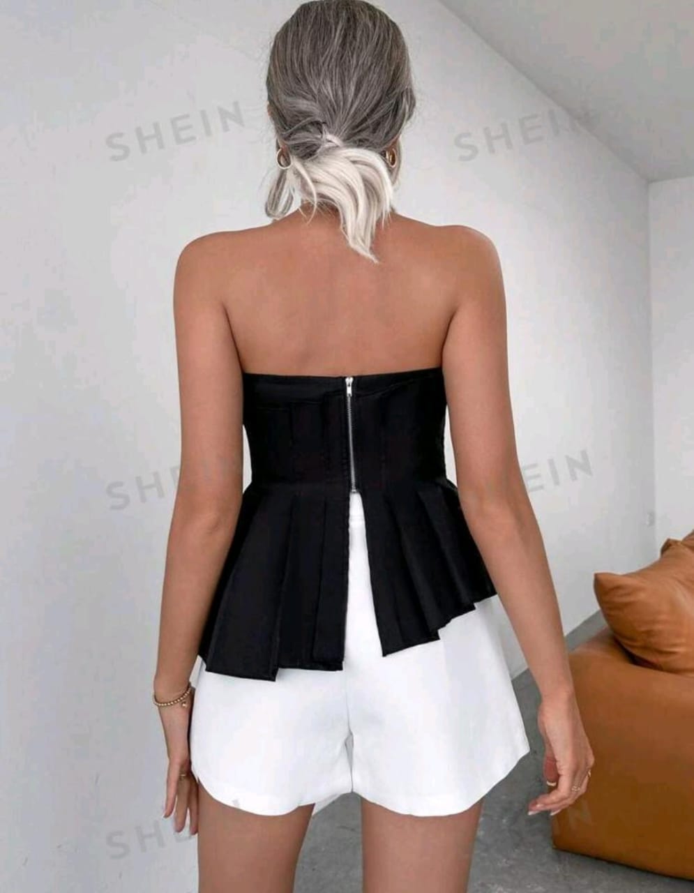 - Comprimento: Acima da linha da cintura, com corte moderno.